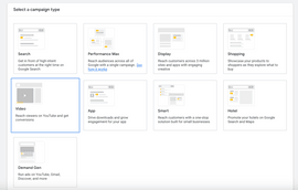 2. Select Video for your campaign type.
