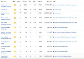 Bidding on competitors’ branded keywords is another common tactic. Here’s an example of other brands’ ads being served on a search for “monzo bank”: