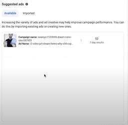 The Suggested Ads section scans your account for all the ads you’ve run and suggests the best ones. You can use them if you want.