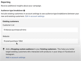 Next, add your existing customers to the Advantage+ shopping campaign.