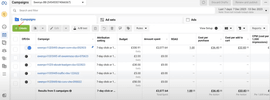On the left-hand side, you have two rows – the top one is the campaign, and the one below it is your ad. Advantage+ shopping campaigns don’t show you your Adset right away.