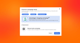 Ensure you’ve selected the Advantage+ shopping campaign, then click Continue.