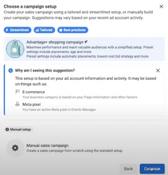 - Advantage+ shopping campaign (selected by default)