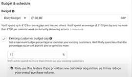 We’d suggest you check the box – Existing customer budget cap and set a maximum budget percentage to spend on your existing customers.