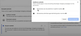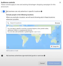 Go to Account controls > Audience controls and select ‘My business can only advertise in specific locations.’