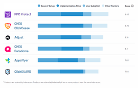 As well as being named a Leader in the Click Fraud Software sector and first in Best Relationship, we were also featured #1 in three new awards: Best Implementation, Best Usability, and Easiest To Use.