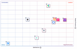 Products in the Leader quadrant are rated highly by G2 users and have substantial Market Presence scores.