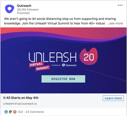 Outreach’s sponsored content is a great example of how to use LinkedIn’s native advertising features to reach a wider target audience. The content is well-written and relevant, making it more likely to be shared by users.