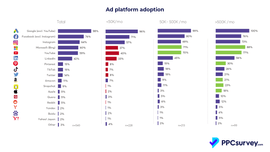 The percentages in the chart above simply indicate how often a platform was part of the advertising mix, not necessarily the relative spend on that platform. To learn more about the spend on the main networks, check out the main PPC 2022 report.