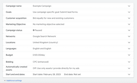Run through the high-level campaign settings and check they’re optimised for your campaign goal: